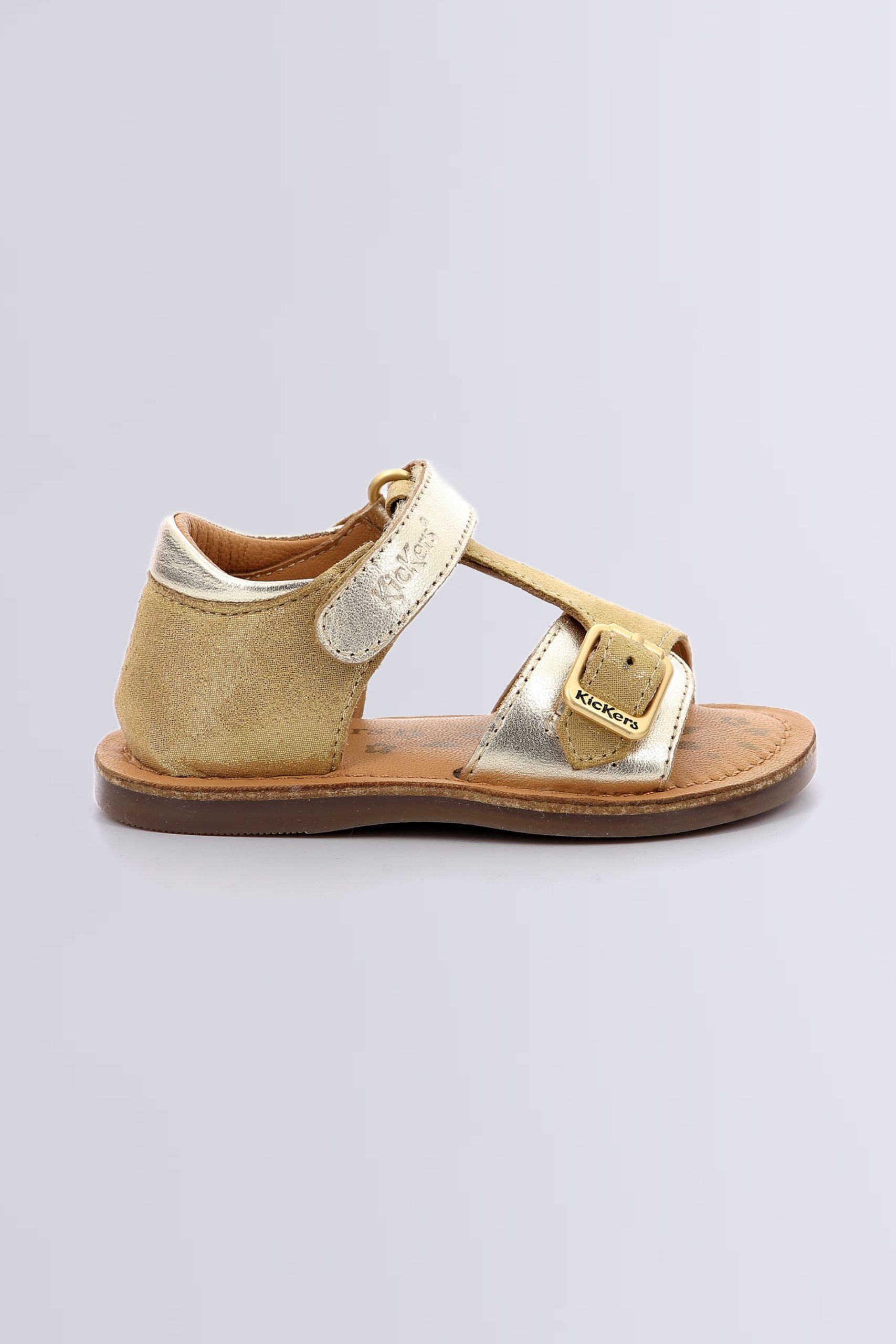 Faites briller les journées d’été de votre petite fille avec les sandales pour bébé Diazzy signées Kickers. Ce modèle résolument mode séduit par son cuir doré subtilement contrasté : deux nuances de doré (clair et foncé) qui jouent avec la lumière et apportent une touche chic et sophistiquée à toutes ses tenues.
