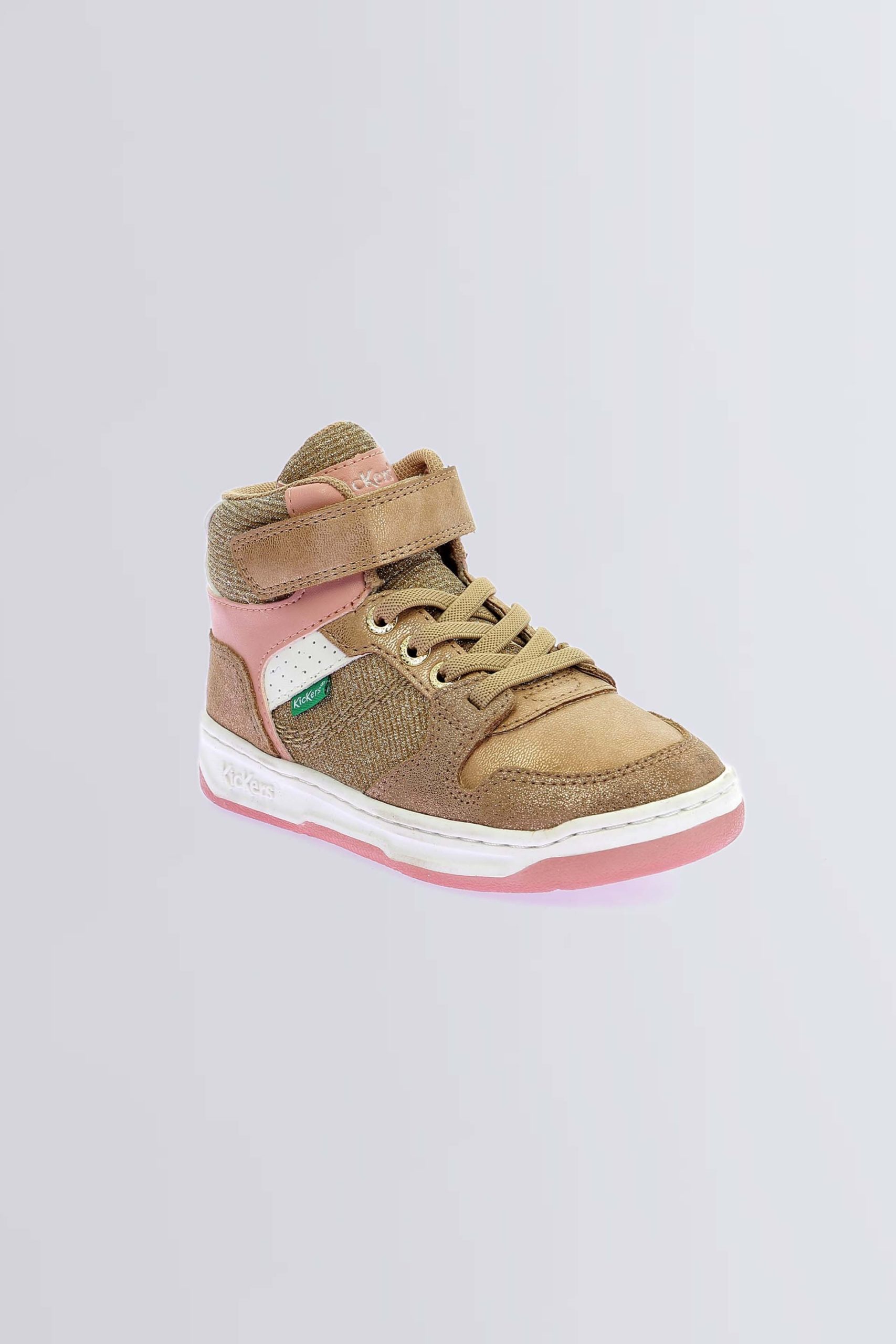 Craquez pour ces baskets montantes Kickado en doré et rose, un vrai combo girly et stylé qui fera briller toutes les petites fashionistas ! Conçues pour offrir confort et maintien grâce à leur fermeture scratch et lacets, elles accompagnent les filles dans toutes leurs aventures avec élégance.